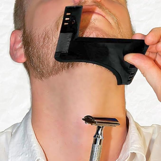 Generic - مشط اللحية الكل في واحد، اداة تصفيف مع مجموعة استنسل للحلاقة للذقن وخط الرقبة، دليل تشذيب دقيق وسهل التحكم في تصفيف اللحية