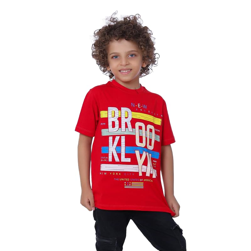 BEBO - BEBO Boys Boys Printed Half Sleeve T-Shirt Brick