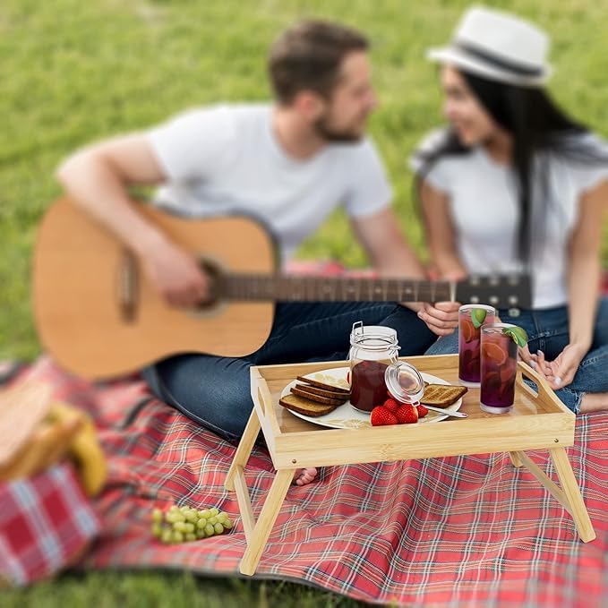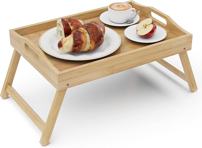Generic - صينية سرير بمقابض وارجل قابلة للطي طاولة زان للافطار في السرير للطعام والوجبات الخفيفة خشب زان