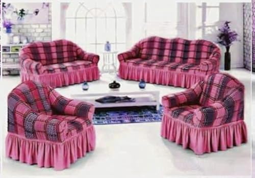 Generic - طقم اغطية كنب بيدمون، مكون من غطاء للكنبة الثلاثية و كرسيين، بتصميم تركي متشابك ونقشة مربعات بلون كشمير، مكون من 4 قطع، متعدد
