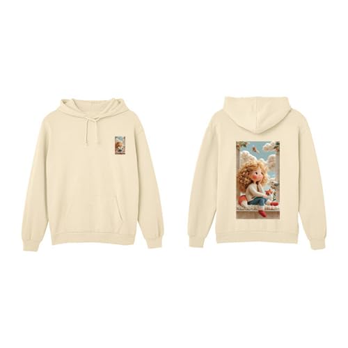 Generic - سويت شيرت بغطاء للرأس (هودي) بطباعة فنية لملاك مع جيب أمامي، بيج، مقاس (9-12 سنة)