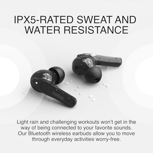 Belkin - بلكن سماعات اذن ساوند فورم موف بلس ترو اللاسلكية (سماعات بلوتوث مع علبة شحن لاسلكية، تحكم باللمس، معتمدة IPX5، مع صوت جهوري عميق لاجهزة ايفون واندرويد وغيرها)