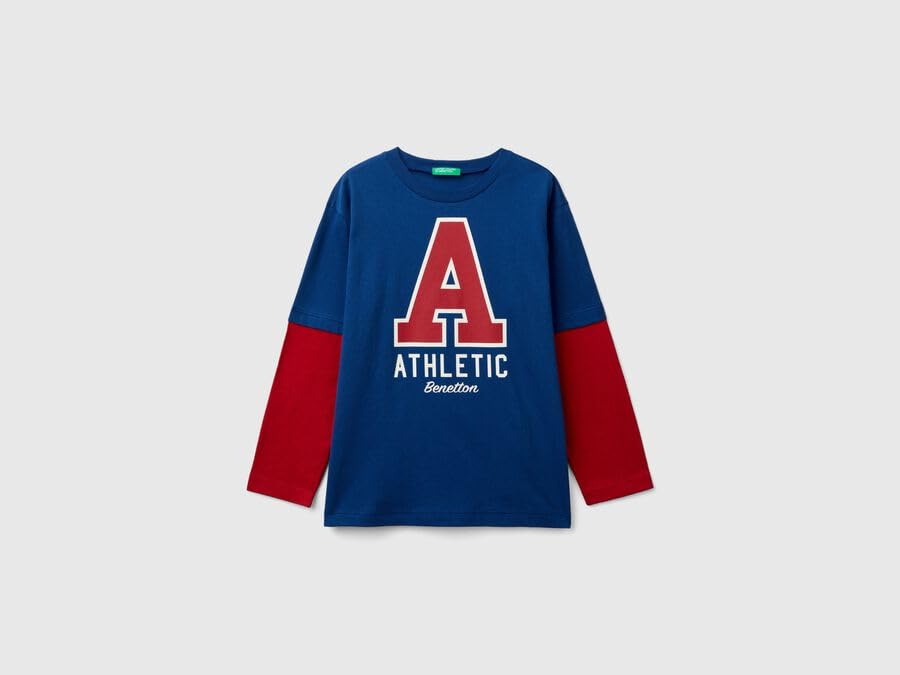 United Colors of Benetton - يونايتد كولرز اوف بينيتون تيشرت باكمام مزدوجة للاولاد بعمر 10-11 سنة متعدد الالوان 3I1XC10JG