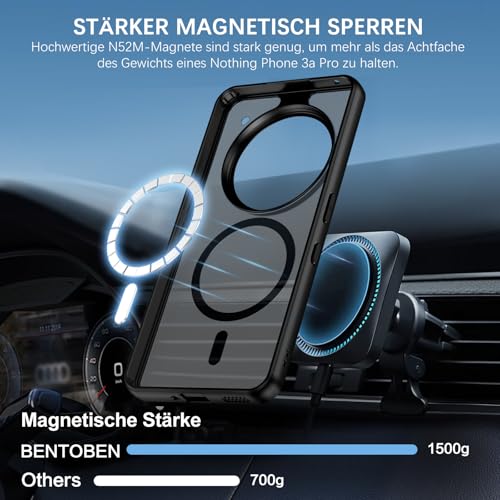 BENTOBEN - بينتوبين جراب مغناطيسي لهاتف نوثينج فون 3a برو [متوافق مع ماج سيف] جراب نوثينج فون 3a برو، جراب حماية من الدرجة العسكرية مضاد للصدمات، خلفية شفافة غير لامعة مضادة للخدش، اسود