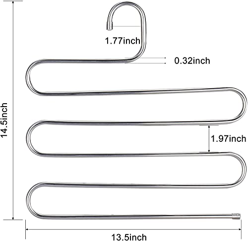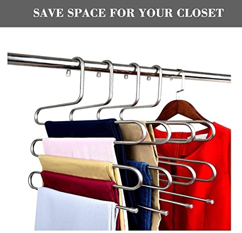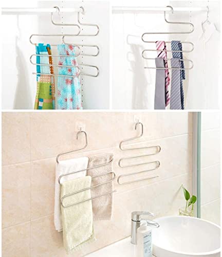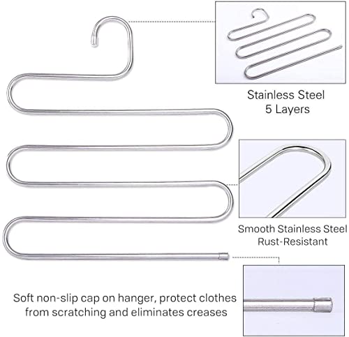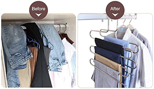 BePrincess - 5 قطع من حامل سراويل متعددة لتنظيم الدولاب، من الستانلس ستيل على شكل حرف S ب5 طبقات لتخزين المساحة