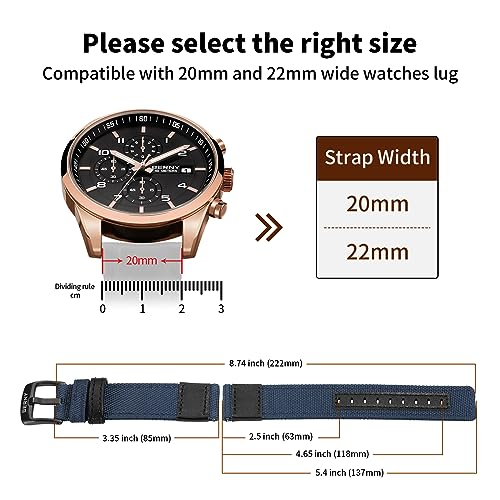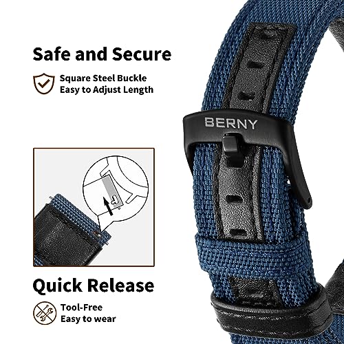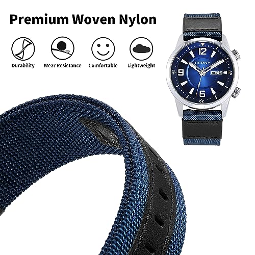 BERNY - سوار ساعة من النايلون المنسوج الممتاز سريع الفك للرجال والنساء من بيرني - 20 ملم، 22 ملم، 24 ملم، 20 ملم، نايلون، بدون أحجار كريمة