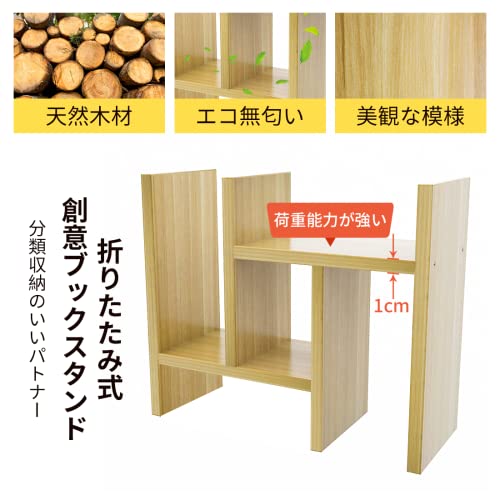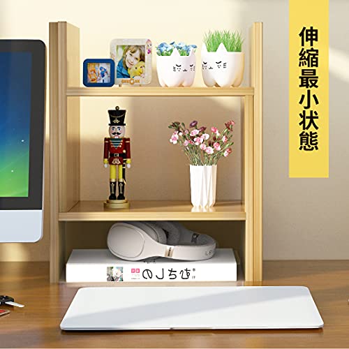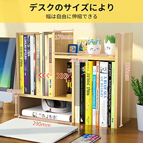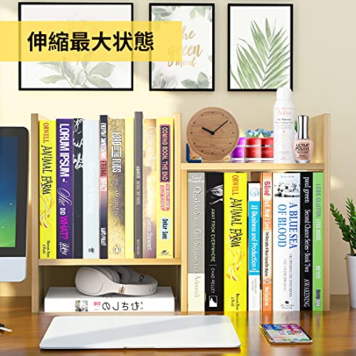 BESONT - رف مكتبي من بيسونت، حامل كتب قابل للتمديد، مساحة تخزين خشبية لسطح الطاولة، طرق تجميع متنوعة (لون جوزي)