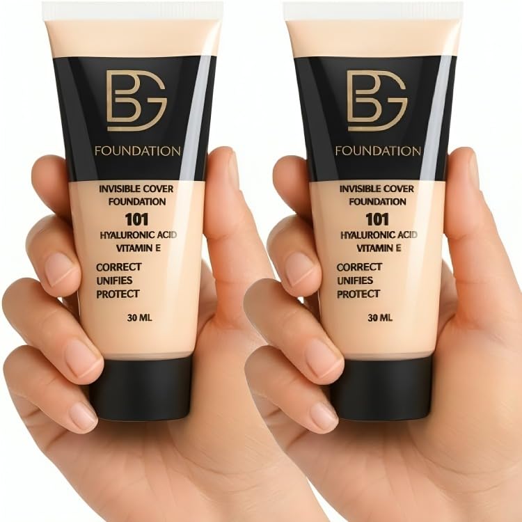 BG - كريم أساس 101 بتغطية غير مرئية، كريم أساس لجميع أنواع البشرة بلمسة نهائية غير مرئية من بي جي، 30 مل (عبوتين)