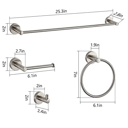 - 【مجموعة اكسسوارات الحمام الفعالة المكونة من 8 قطع】تتضمن مجموعة ملحقات الحمام الخاصة بنا قضيبين للفوط وحاملين لورق المرحاض وخطافين للرداء وحلقتين للفوط. إذا كان منزلك يحتوي على أكثر من حمام واحد، فستكون مناسبة جدًا لك