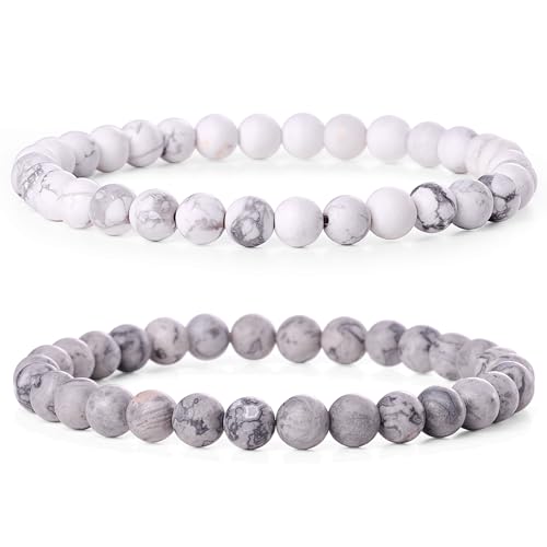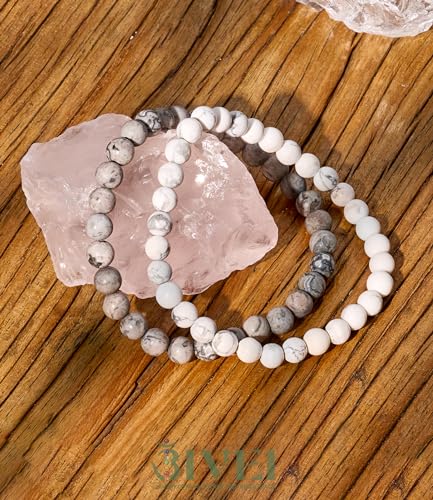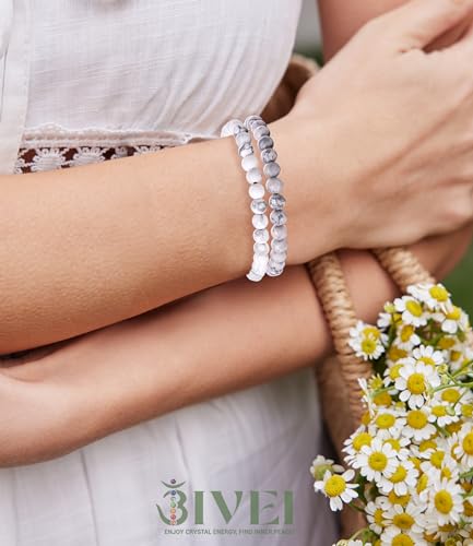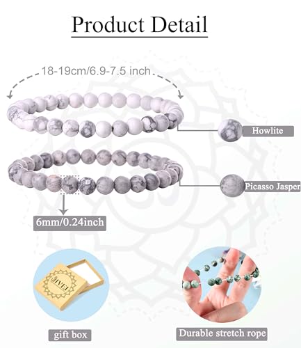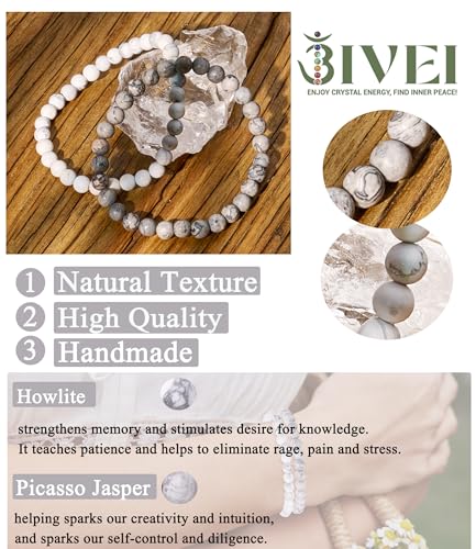 Bivei - بيفي اساور خرز 6 ملم للرجال من كريستال الشفاء الطبيعي من حجر هولايت بيكاسو يشب دائري مصنوع يدويا سوار مطاطي للنساء لليوجا والتامل وتخفيف القلق