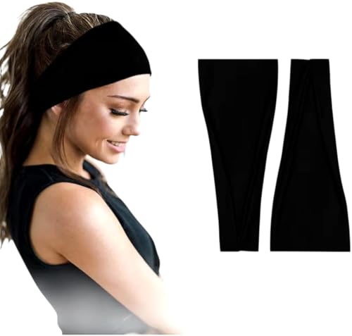 Generic - عصابة رأس رياضية للنساء، أسود، قطعتين، مناسبة للتمارين واليوغا والجري