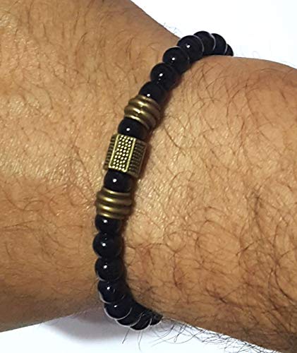 Other - سوار خرز أسود بحليه معدن اوكسوديه، للجنسين