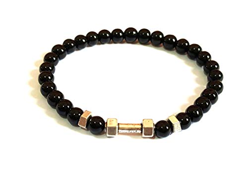 generic - سوار خرز اسود 6 مع حلية معدنية انيقة من او.كيه.ام