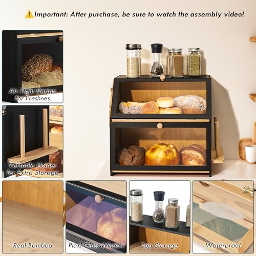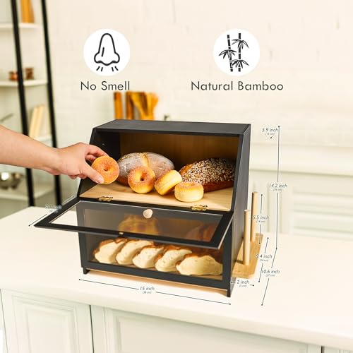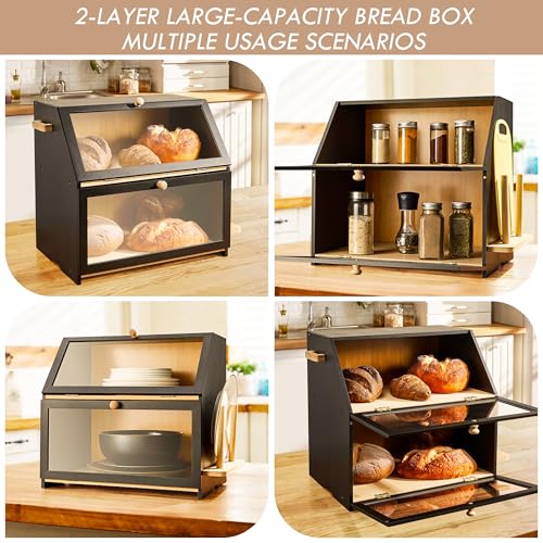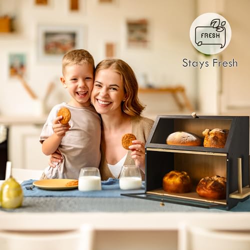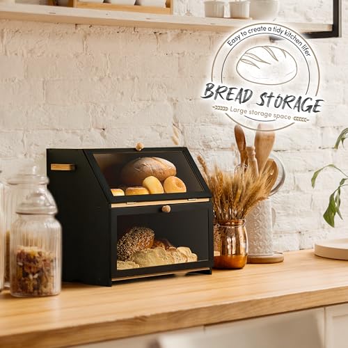 DRASTE - صندوق خبز اسود لسطح طاولة المطبخ لتخزين الخبز في المنزل خشبي كبير جدًا للخبز منظم حامل للمطبخ الطاولة