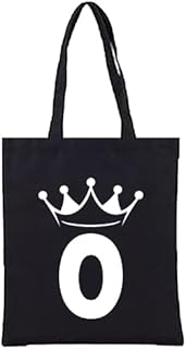 Generic - Black Canvas Tote Bag with Crown (R) Letter, Shoulder Bag