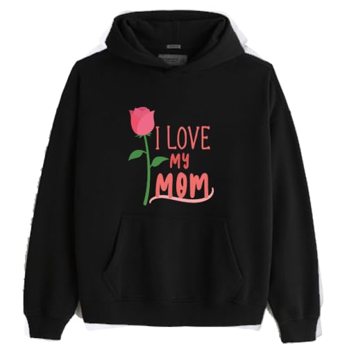Generic - سويت شيرت بغطاء رأس أسود مع تصميم I Love My Mom Rose مع جيب مقاس (M)