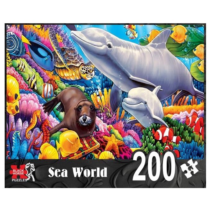 Generic - Black Horse بازل عالم البحار، 200 قطعة، تصميم دلافين وسلحفاة وأسماك ملونة