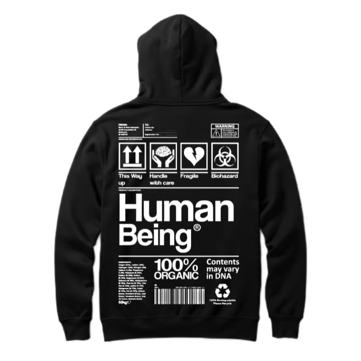 Generic - سويت شيرت بغطاء رأس شبابي كبير الحجم من الخلف مقاس كبير للعمل بطباعة نصية (human being) 36