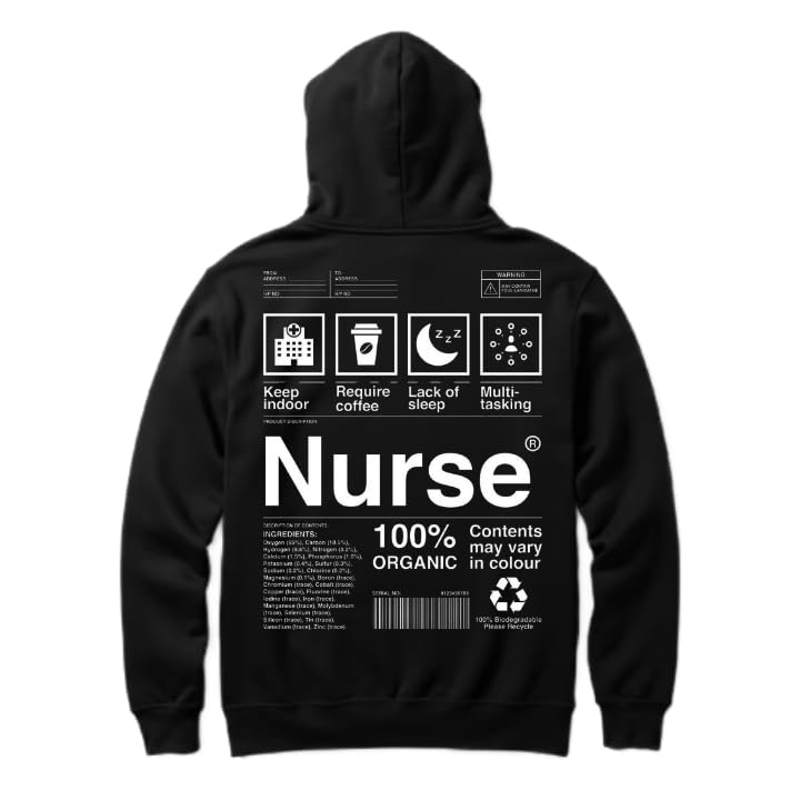 Generic - هودي شبابي أسود واسع، برسمة على الظهر، كتابة كبيرة (nurse) 42