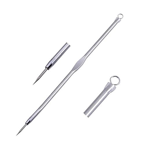 - أحد الجانبين هو سلك ستيل دائري يمكنه ضغط الرؤوس السوداء، والجانب الآخر هي إبرة حادة لتثقيب حب الشباب/ الرؤوس السوداء.