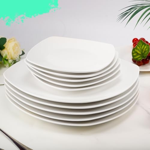 Blcculi - أطباق عشاء من البورسلين مكونة من 6 أطباق عشاء مربعة، طبق حلوى من البورسلين، طبق تقديم مربع أبيض للسلطة والمكرونة والستيك والوجبات الخفيفة، مقاس 26.6 سم، من بلكولي