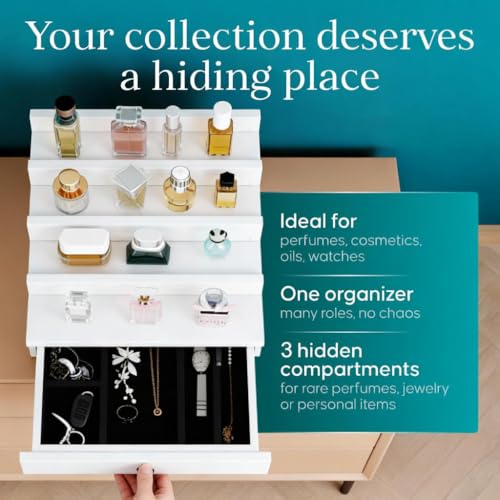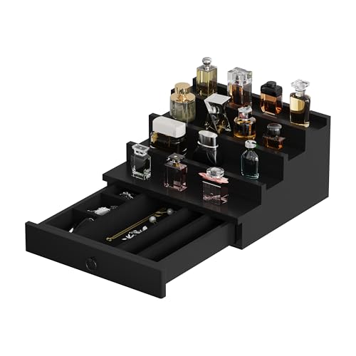 Blisse - منظم كولونيا/عطور من بليس، درج تخزين من 4 طبقات مع مساحات تخزين مخفية، حافظة عرض مبطنة ناعمة (اسود)