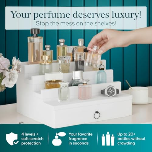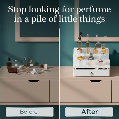 - تنظيم متعدد الاستخدامات: حل تخزين مثالي لعرض وتنظيم العطور والكولونيا وغيرها من عناصر التجميل بطريقة أنيقة وموفرة للمساحة
