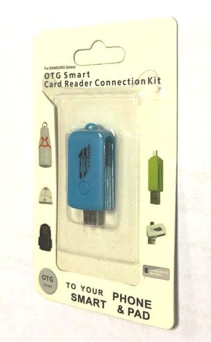 Generic - محول Micro الى USB او تي جي مع قارئ كارت ذاكرة / مدخل V8 ومخرج USB لون ازرق