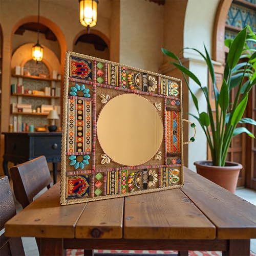- قطعة فنية جدارية فريدة: تتميز كل مرآة مصنوعة يدويًا بتفاصيل فنية مع مواد مزخرفة ومجموعات ألوان نابضة بالحياة، مما يجعلها قطعة مميزة تضيف الدفء والثراء الثقافي إلى مساحتك
