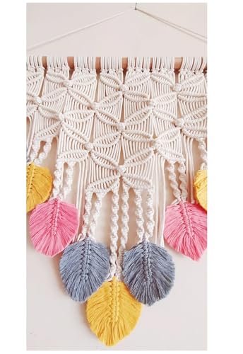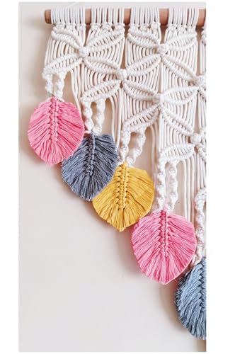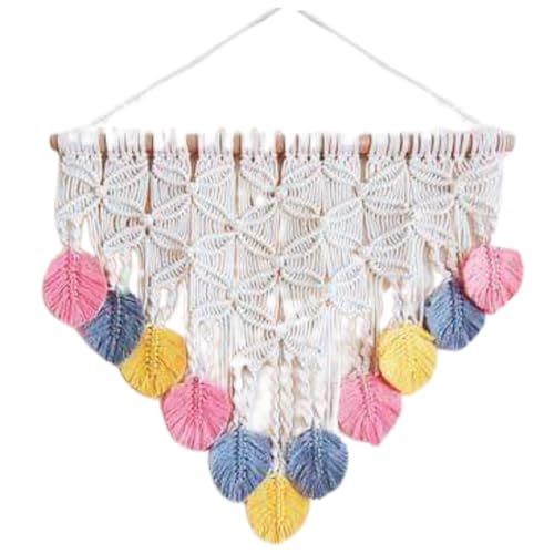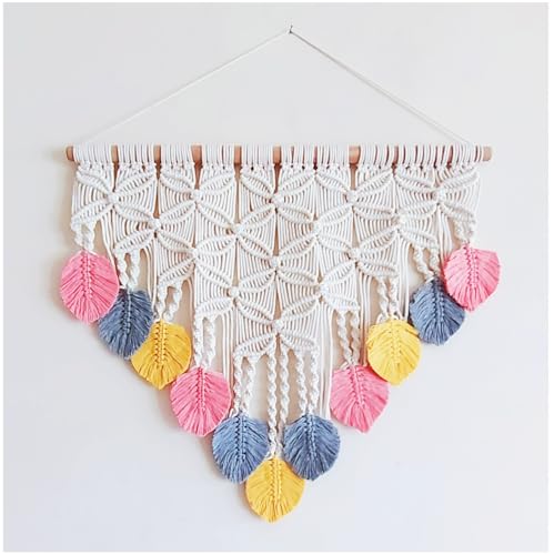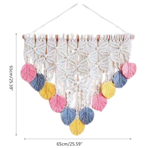Generic - ديكور بوهيمي انيق مع شراشيب على شكل اوراق شجر، زينة مكرمية للحائط منسوجة، لوحة فنية جدارية عصرية لغرفة النوم وغرفة المعيشة (متعدد الألوان, مقاس65*65سم)