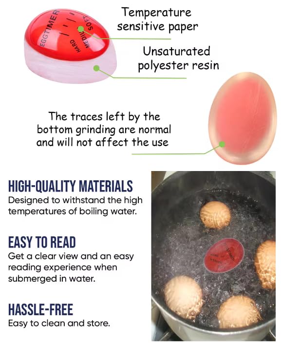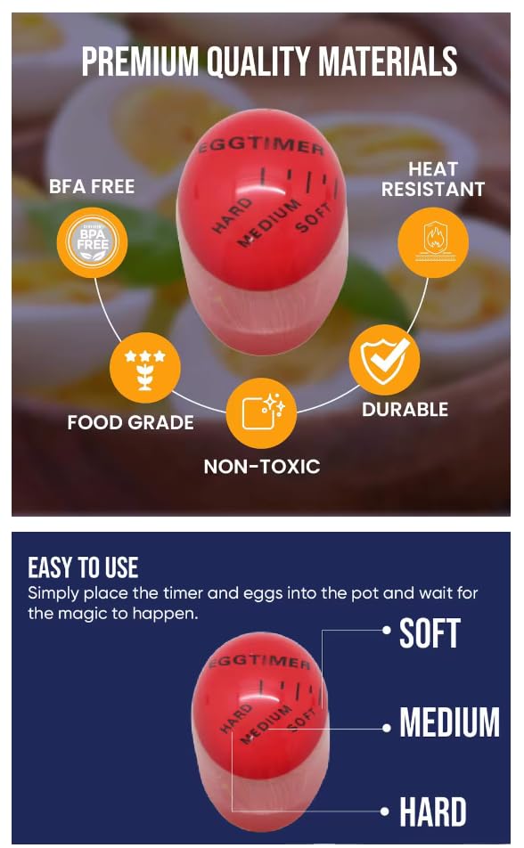 WOO LANDO - مؤقت لسلق البيض قابل لإعادة الاستخدام بشكل لانهائي وصلب ومتوسط الحجم وناعم