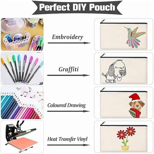 Bolivia's - شنطة فارغة للحرف اليدوية، أكياس قماشية بسوستة، شنطة مستحضرات تجميل فارغة متعددة الأغراض للسفر لتخزين أدوات الزينة والأقلام الرصاص واللوازم الفنية نت بوليفيا، 21 × 12 سم، 10 قطع