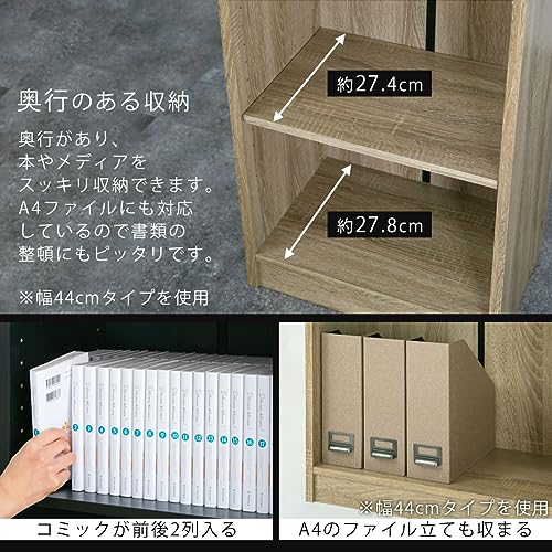 ぼん家具 - خزانة كتب من بون فيرنتشار، رفيع، رف، عرض 11.8 انش (300 سم)، خزانة كتب خشبية، رف تخزين، رسوم هزلية، سعة كبيرة، انيقة، بلوط