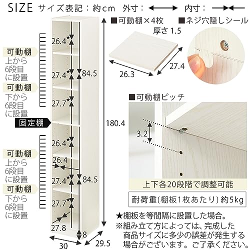 - 4 أرفف متحركة (1.3 انش (3.2 سم) / 20 بإجمالي 40 فتحة في الأعلى والأسفل) / 1 رف ثابت/ سعة الحمولة (لكل رف): تقريبًا. 5 كيلو غرام; مستحضرات التجميل الخلفية: لا شيء/الأدوات المطلوبة: Phillips screwdriver, hammer. *الأدوات المطلوبة غير متضمنة