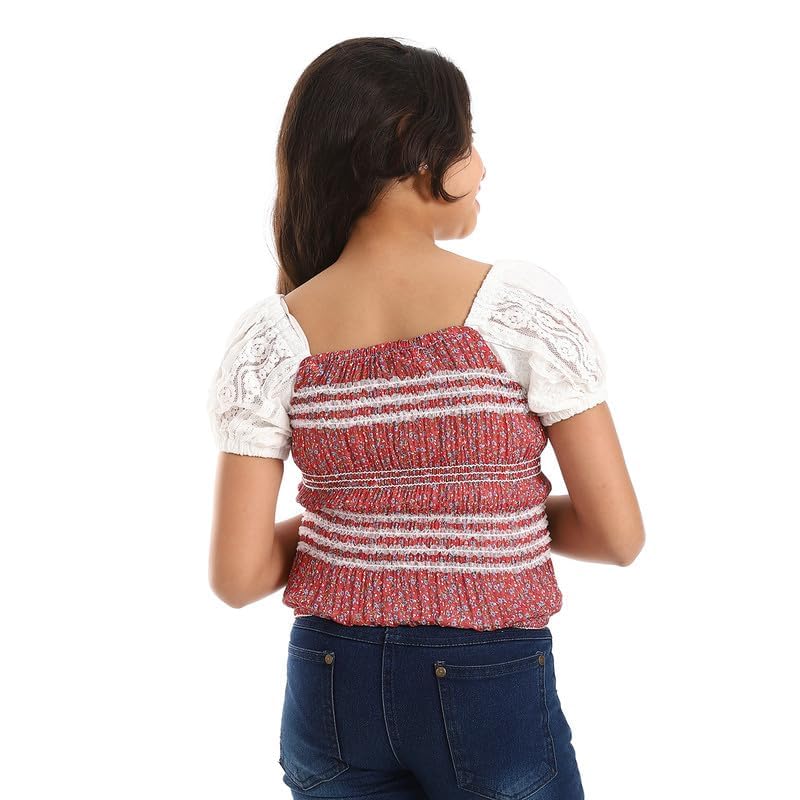 BONGO - بلوزة مكشوفة الكتفين من قماش البليس بونجو للبنات أحمر 8 سنوات