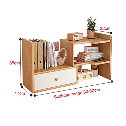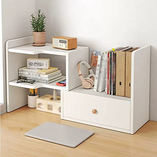 SUNESA - رف كتب بلون ابيض، رف كتب خشبي قابل للتعديل، منظم تخزين سطح المكتب، رف عرض قائم بذاته، رف كتب صغير قائم بذاته، منظم لوازم المكتب للمنزل والمكتب وخزانة الكتب (