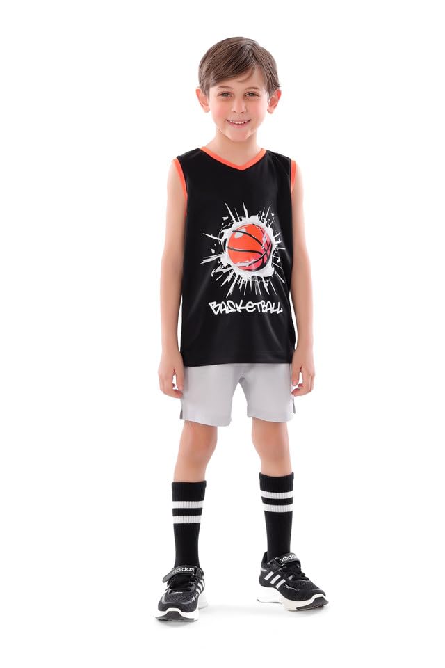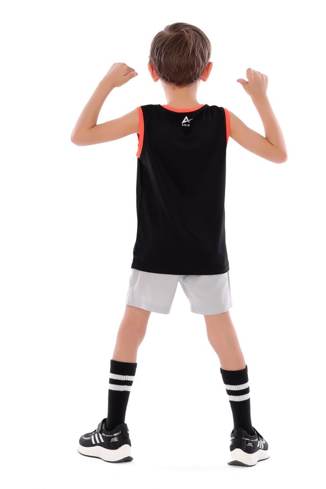 ANJA - تي شيرت كرة السلة للاولاد باللونين الاسود والبرتقالي - قماش مريح وجيد التهوية (8-10 سنوات)