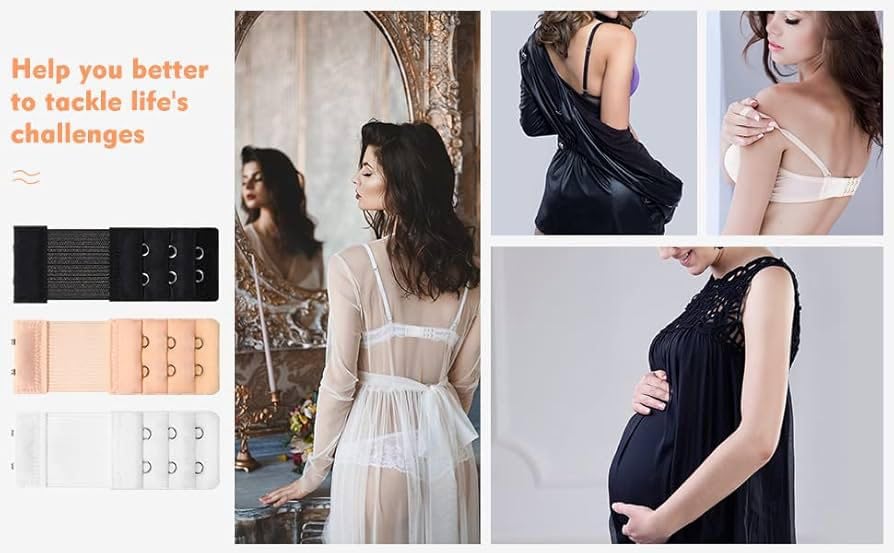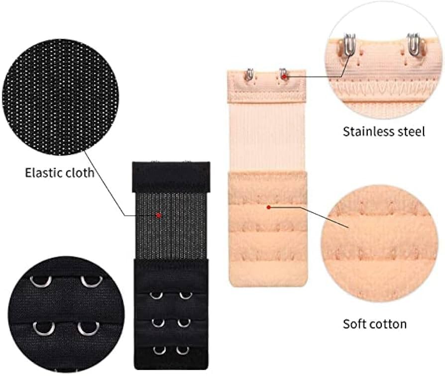 Generic - موسع حمالة الصدر، 3 قطع، 3 خطافات، ألوان متعددة (أسود، بيج، أبيض)، قابل للتمدد