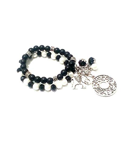 Other - أسورة من المايوركا الاسود والاوف وايت والكريستال الاسود بدلاية، للنساء