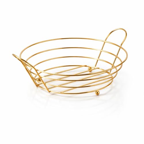 Generic - عياشة لتقديم الخبز دائرية بتصميم سلك بلون ذهبي مع بطانة قماشية قابلة للإزالة للخبز والفواكه والخضروات