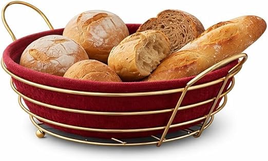 - سلة خبز مصممة لتقديم الخبز واللفائف بشكل مرتب: يتيح الإطار السلكي تدفق الهواء بينما يساعد البطانة القماشية على احتواء الفتات والحفاظ على نظافة الطاولة.