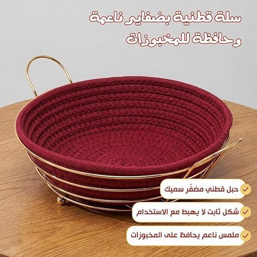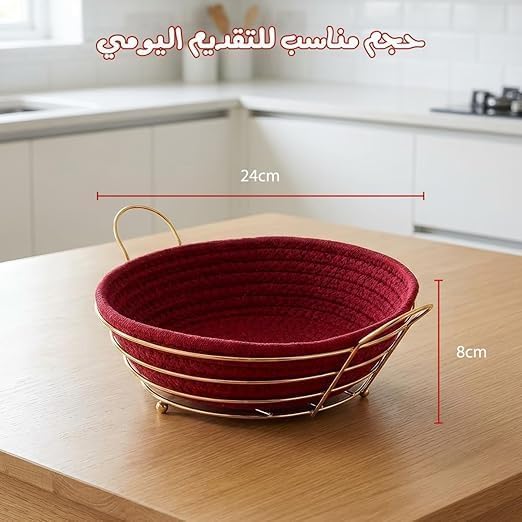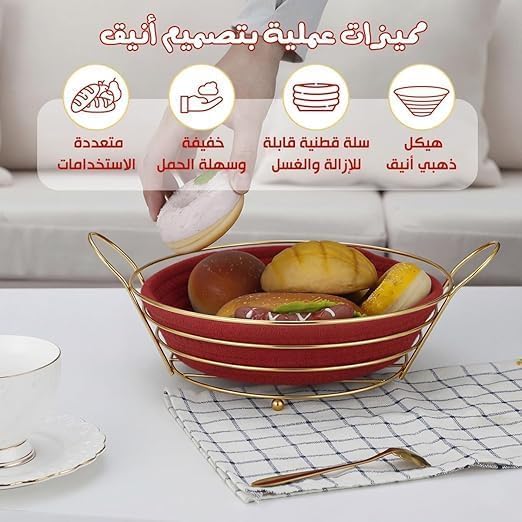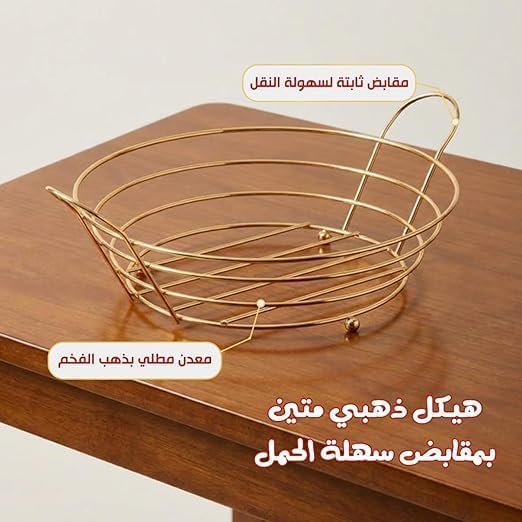 - سلة تقديم سلكية ذهبية تضيف لمسة عصرية للوجبات اليومية وطاولة الإفطار والتجمعات العائلية دون أن تشغل مساحة كبيرة على السطح.