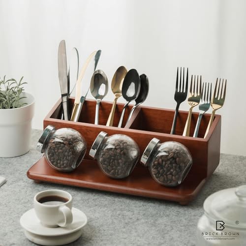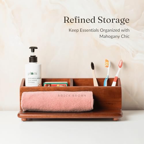 Brick Brown - منظم انيق للمكياج والاكسسوارات من بريك براون، منظم مكتب لطاولات الزينة والحمامات والمطابخ، حامل حافظة متعدد الوظائف لسطح الطاولة للمنزل والمكتب وغرفة النوم، لون ماهوجني