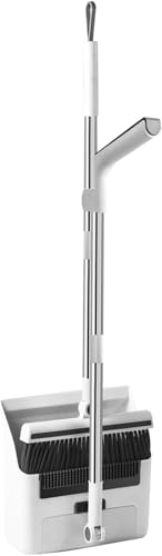 Generic - طقم مكنسة وجاروف بمقبض طويل - مجموعة تنظيف 3 في 1 مع فرشاة وجاروف قابلة للطي - مكنسة أرضيات متعددة الأسطح للمنزل والمطبخ والبلاط والخشب والرخام وزوايا الحوائط