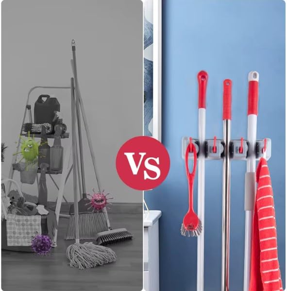 - تصميم يثبت على الحائط: يوفر مساحة الأرضية ويحافظ على أدوات التنظيف الخاصة بك في مكان بعيد عن الأرض، مما يجعله منتجًا مثاليًا للمساحات الصغيرة.