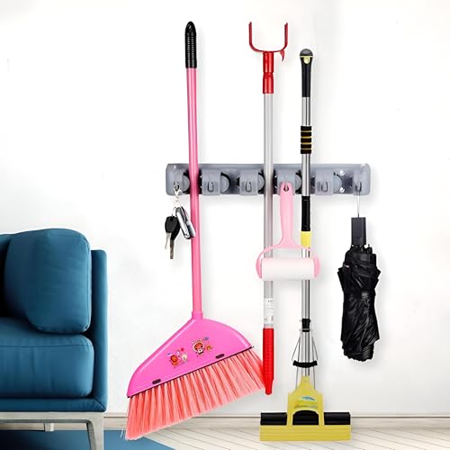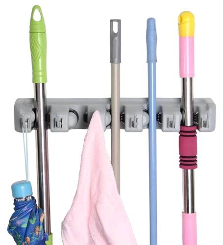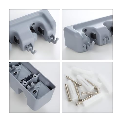 Generic - حامل مقشات - منظم يثبت على الحائط للمقشات والشرشوبة، رف أدوات متعدد الوظائف للحديقة وغرفة الغسيل والتخزين في الجراج مع قبضة آمنة وآلية سهلة الفك.