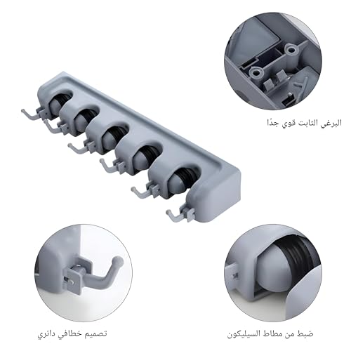 - 【منظم غسيل عالي الجودة وآمن】مصنوع من مواد بلاستيكية صديقة للبيئة وغير سامة ولا طعم لها، منظم الغسيل هذا آمن للبشر. يتميز بـ 5 خطافات، مما يسمح لك بتعليق المساحة الموب أو المقشات أو الفوط أو أي عناصر أخرى، مما يزيد من كفاءة المساحة.