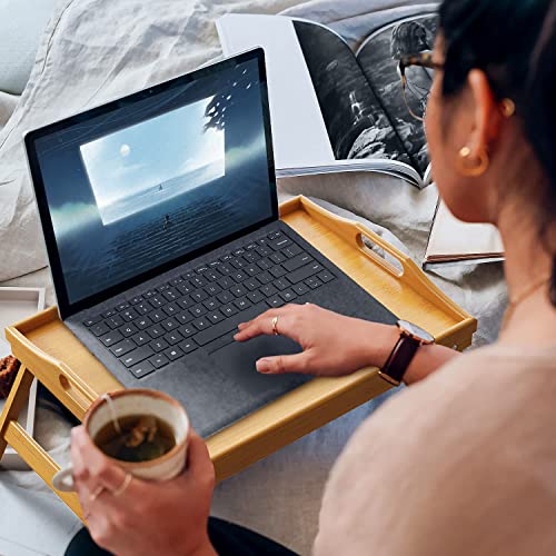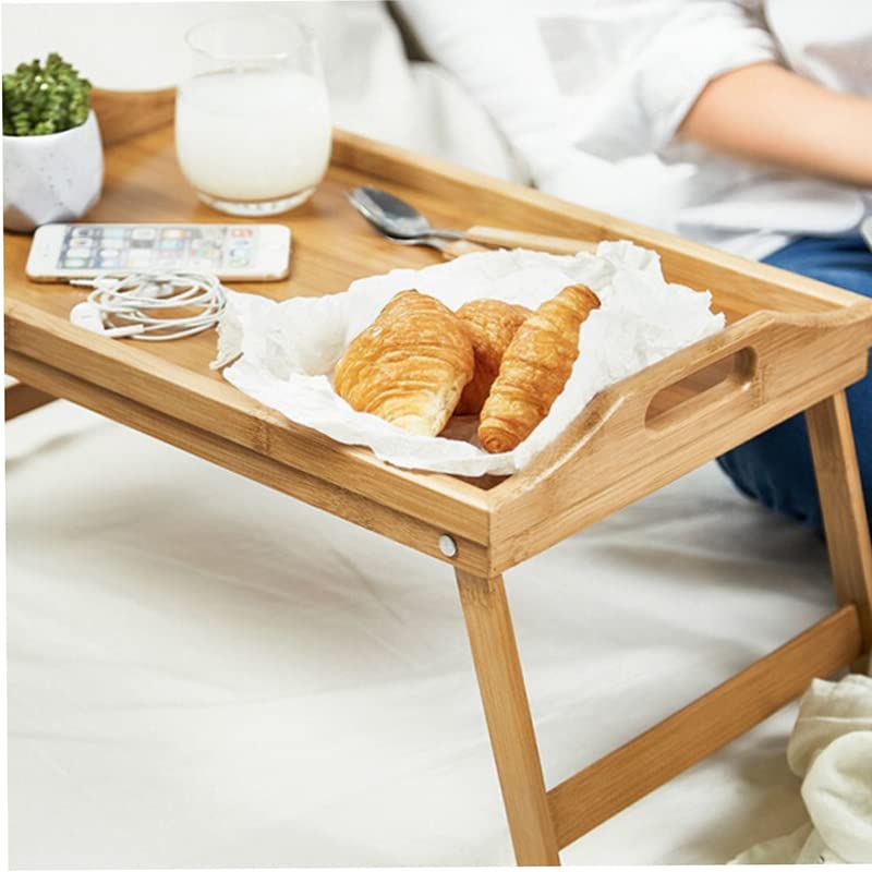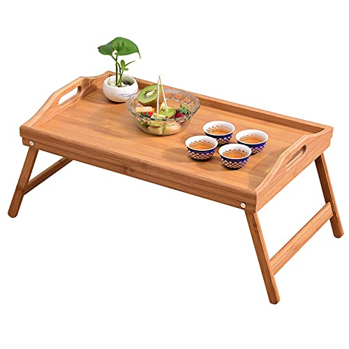 BSTMOME - ترابيزة سرير من البامبو بأرجل قابلة للطي، صينية للفطار مع مقابض، للأطفال والأزواج والكنبة والسرير وتناول الطعام للوجبات الخفيفة والعمل للمكتب واللاب توب من بيبشل