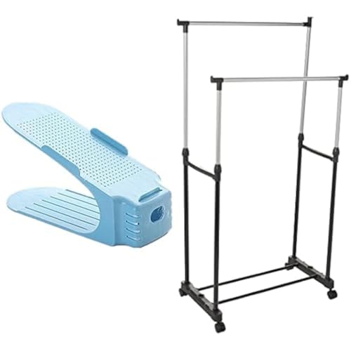 Generic - مجموعة مكونة من 10 قطع من منظم فتحات الاحذية باللون الازرق + علاقة ملابس معدنية ومزدوجة قابلة للازالة والسحب بتصميم متداخل، اسود