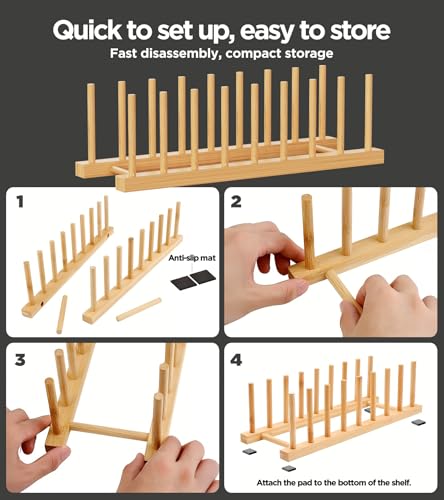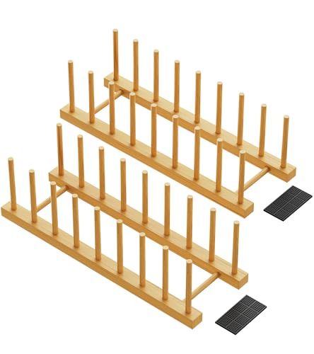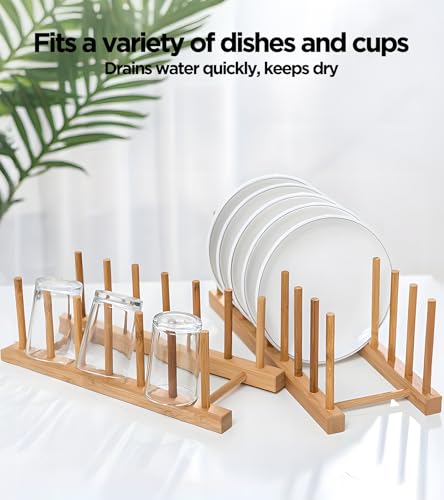 BusyePa - رف تجفيف اطباق من الخيزران من بوسيبا، عبوة من 2 رفوف اطباق خشبية محمولة لاطباق المطبخ/الاطباق/الاكواب/غطاء الاواني/لوح التقطيع